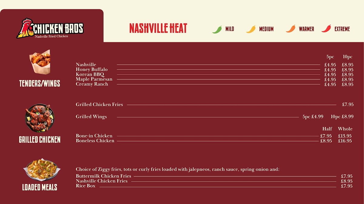 Welcome to Chicken Bros, a hidden gem on Station Road in London, where flavor and hospitality meet. Founded by the charismatic Arif, the restaurant is renowned for its Nashville tenders, grilled chicken, and unique flavors that leave customers craving more. Guests appreciate the quick service, typically within five minutes, and the inviting red and white decor makes for a delightful dining experience. Reviews speak volumes, highlighting the succulent peri peri chicken and unforgettable maple and parmesan wings. At Chicken Bros, it's not just about the food; it's about genuine care, creating a warm atmosphere that keeps customers returning for more.
